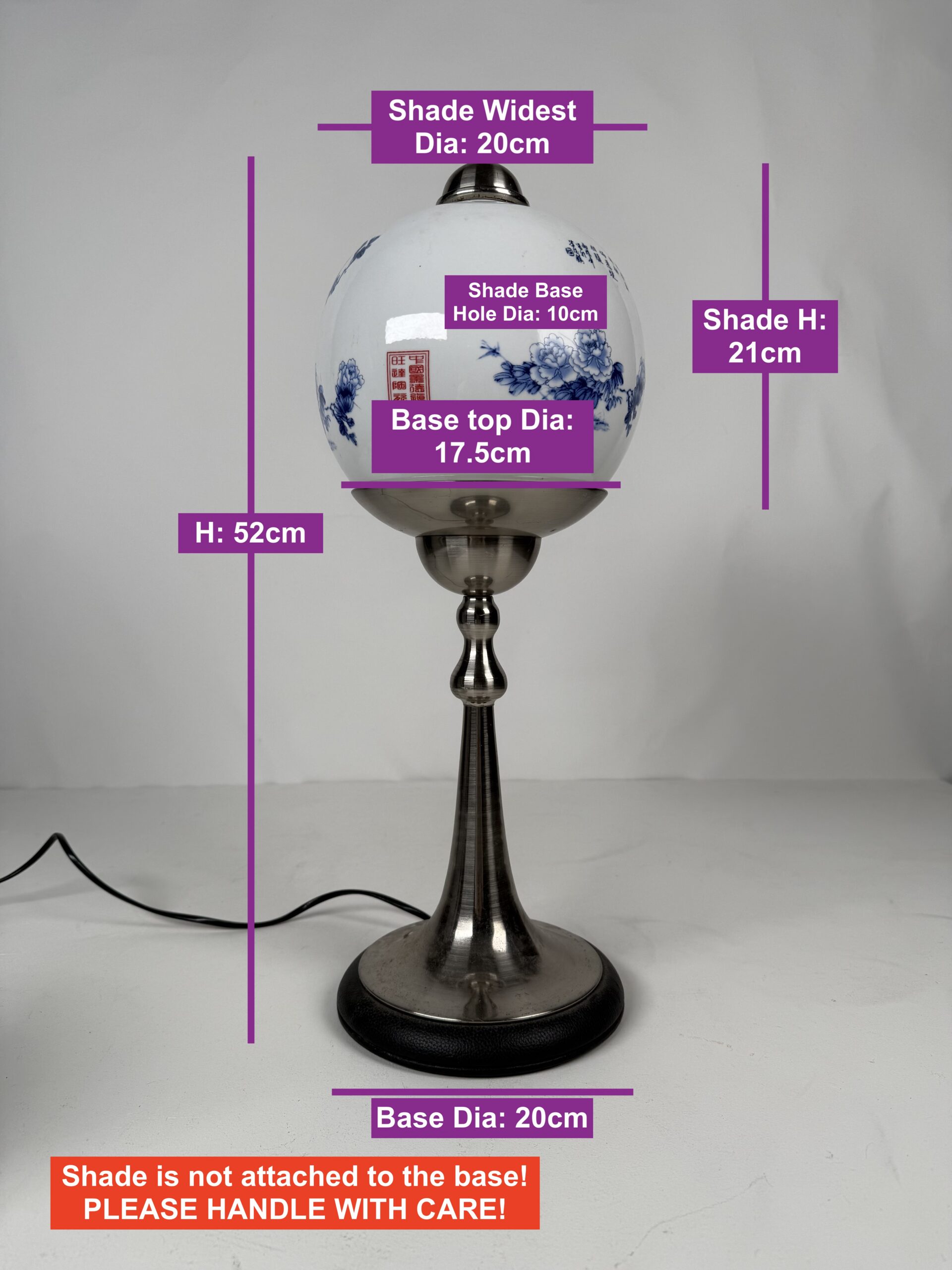 *Shade cannot be locked onto lamp body, PLEASE HANDLE WITH CARE!