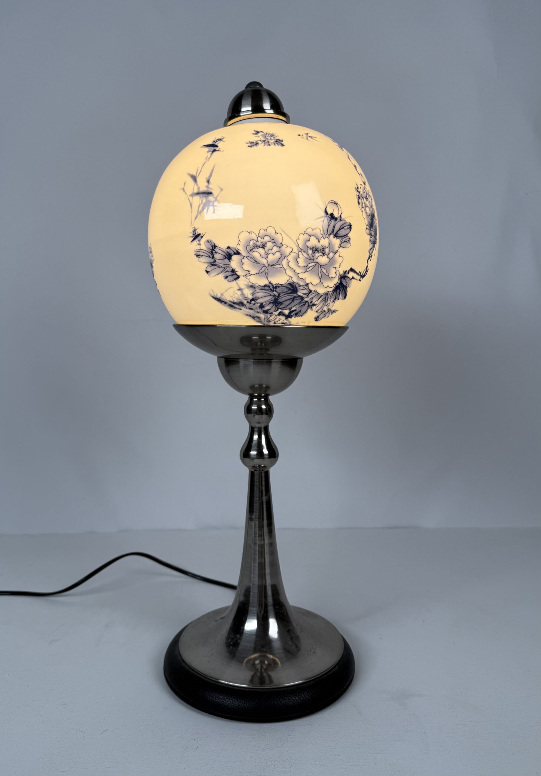 Lamp with original shade (24)_Blue & White Porcelain Ball Shape Lamp B