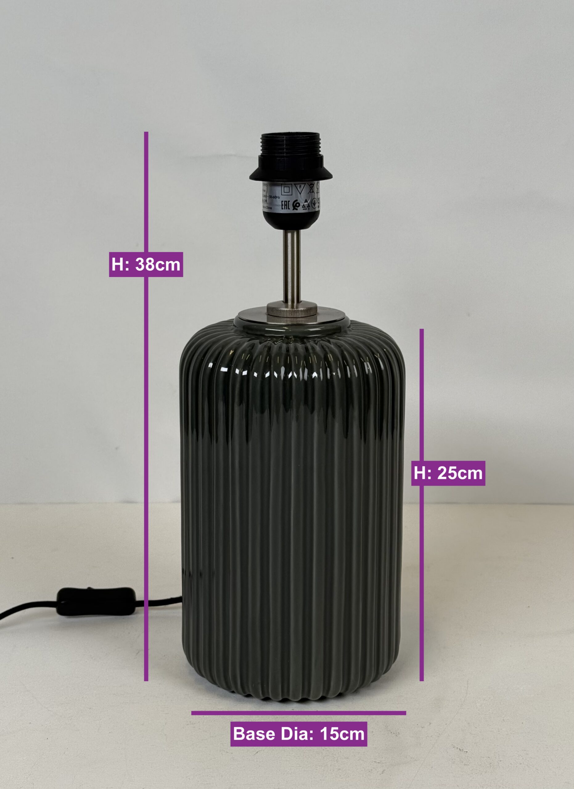 Lamp with No Original shade (15)_Dark Grey Fluted Ceramic Lamp