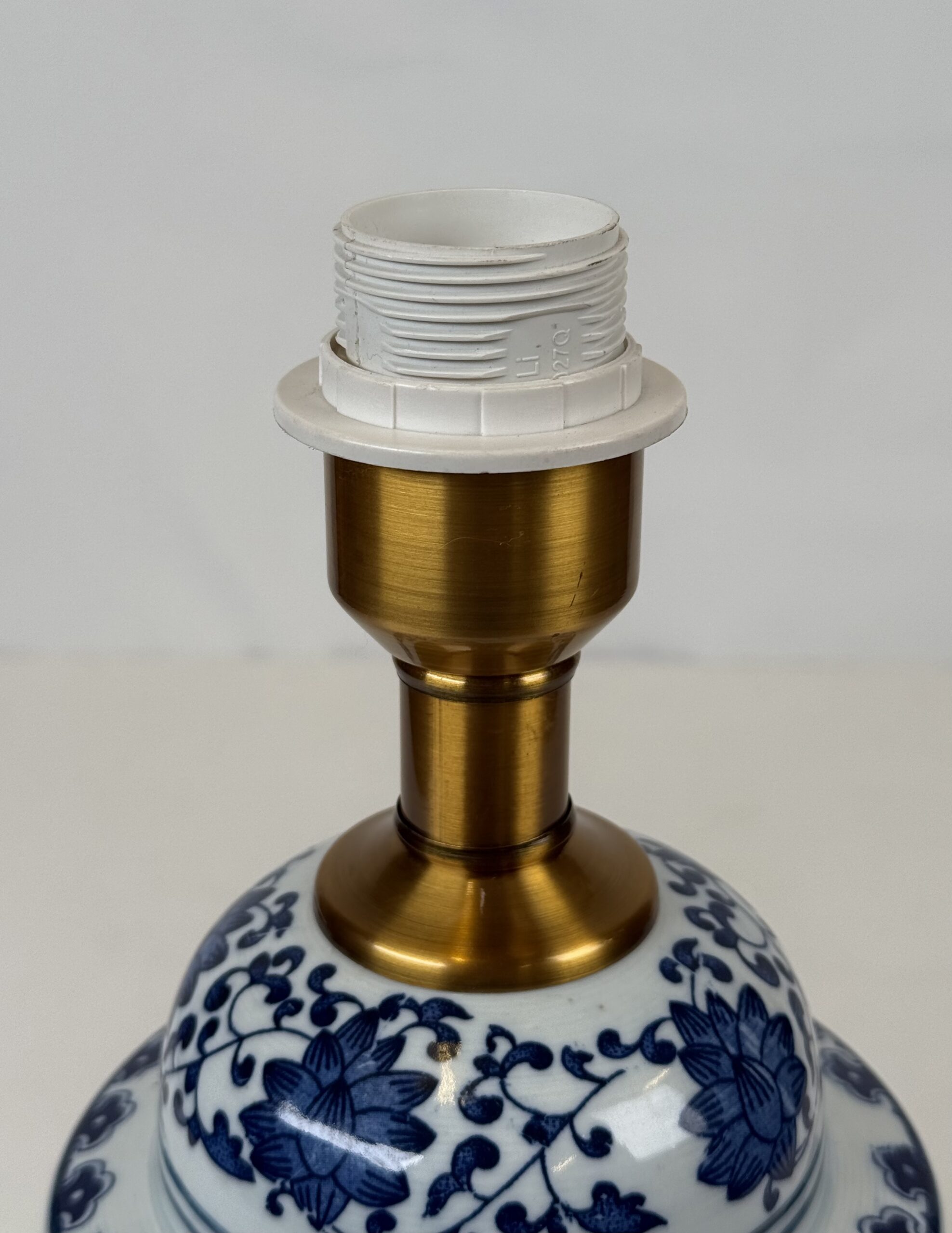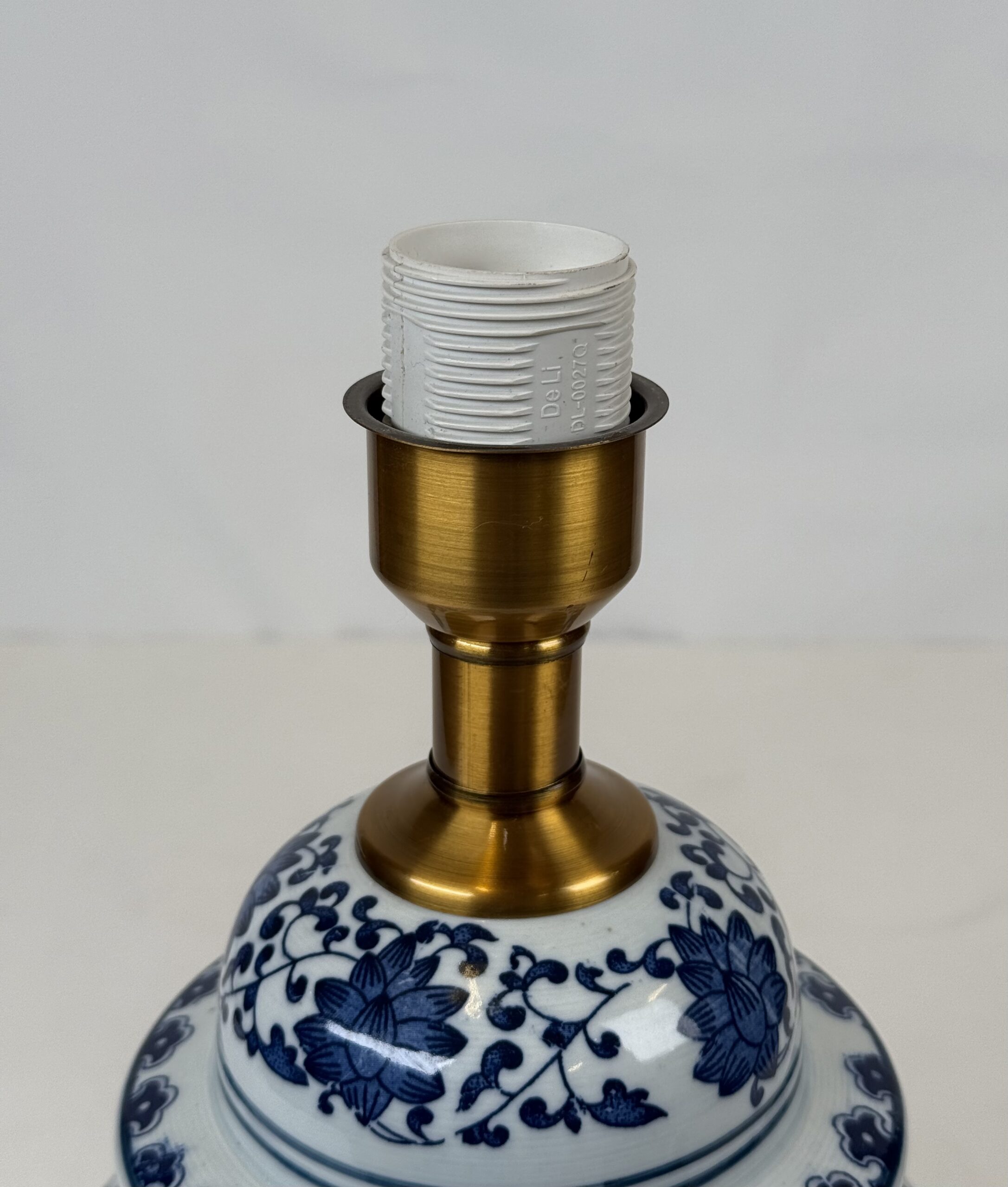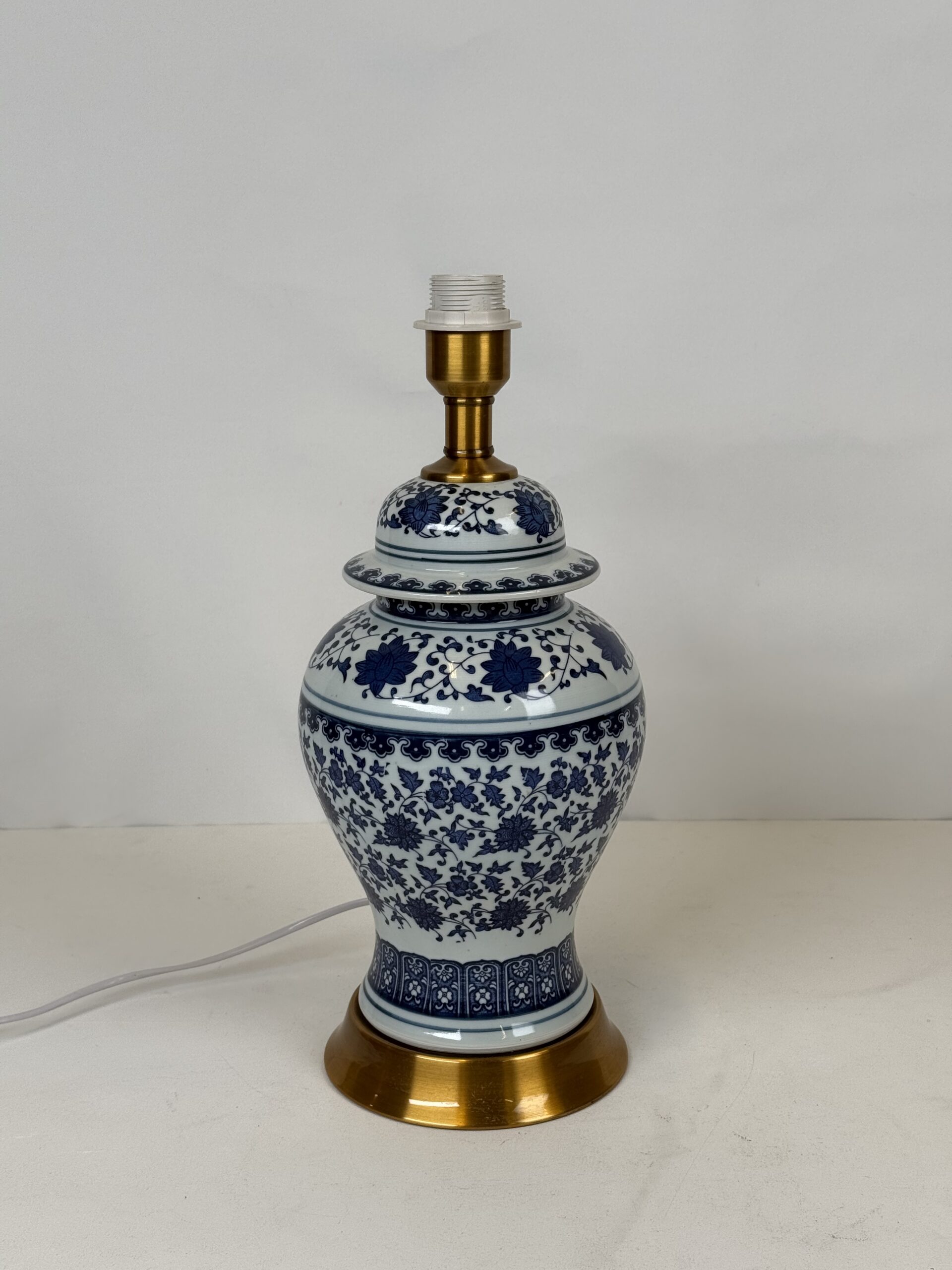 Lamp with No Original shade (21) Blue & White Porcelain with Brass Accent Lamp