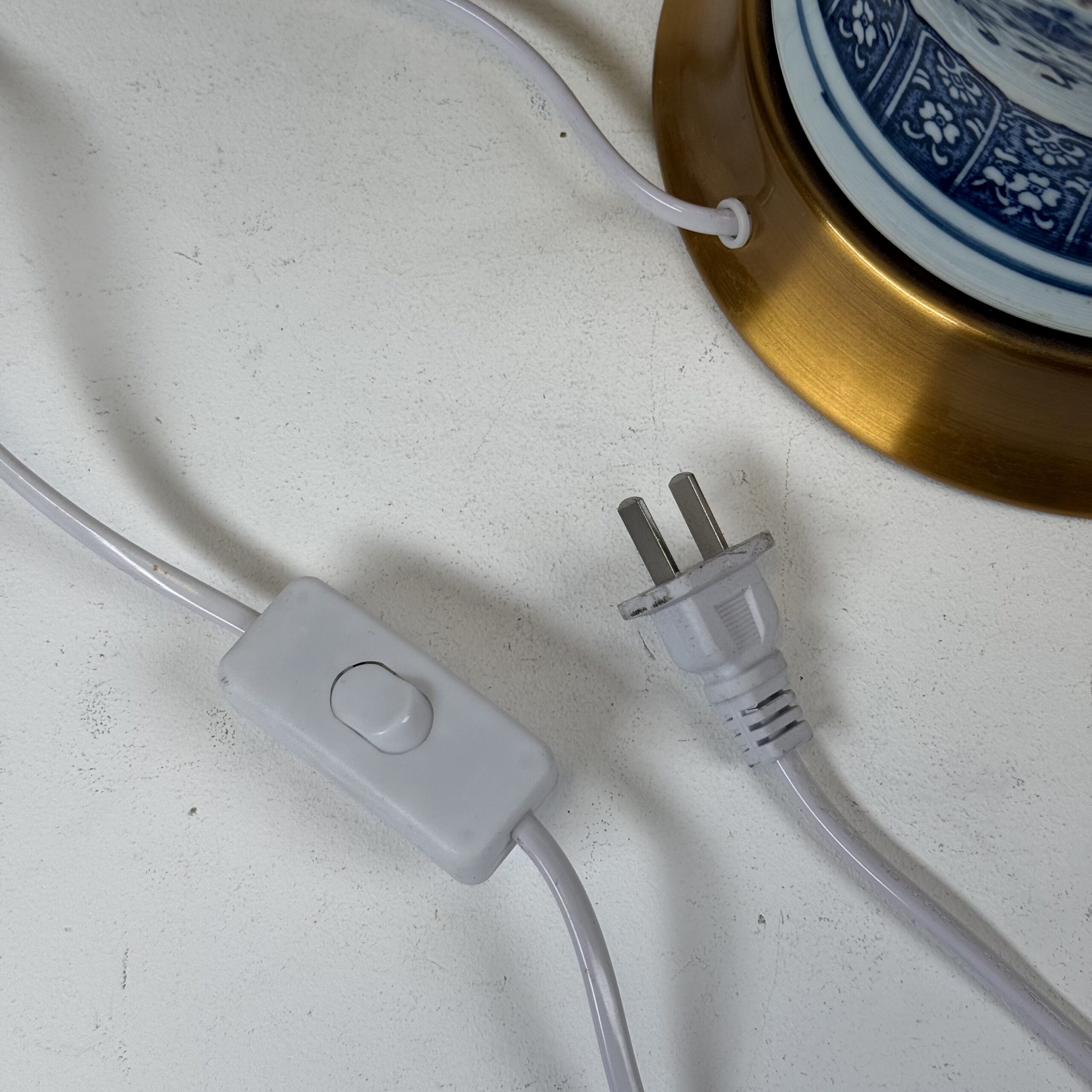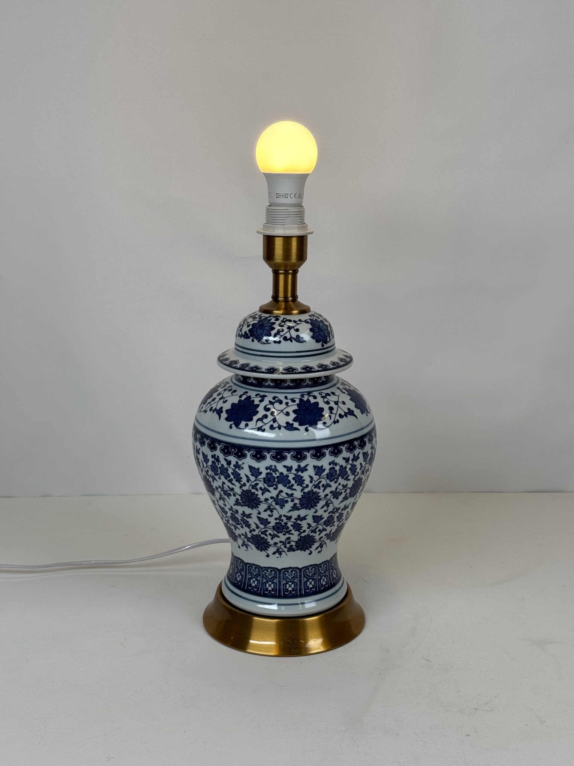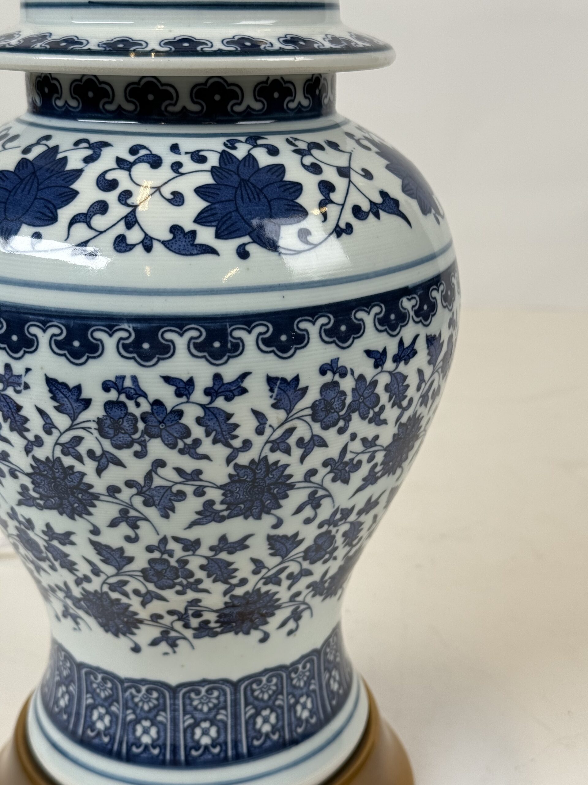Lamp with No Original shade (21) Blue & White Porcelain with Brass Accent Lamp