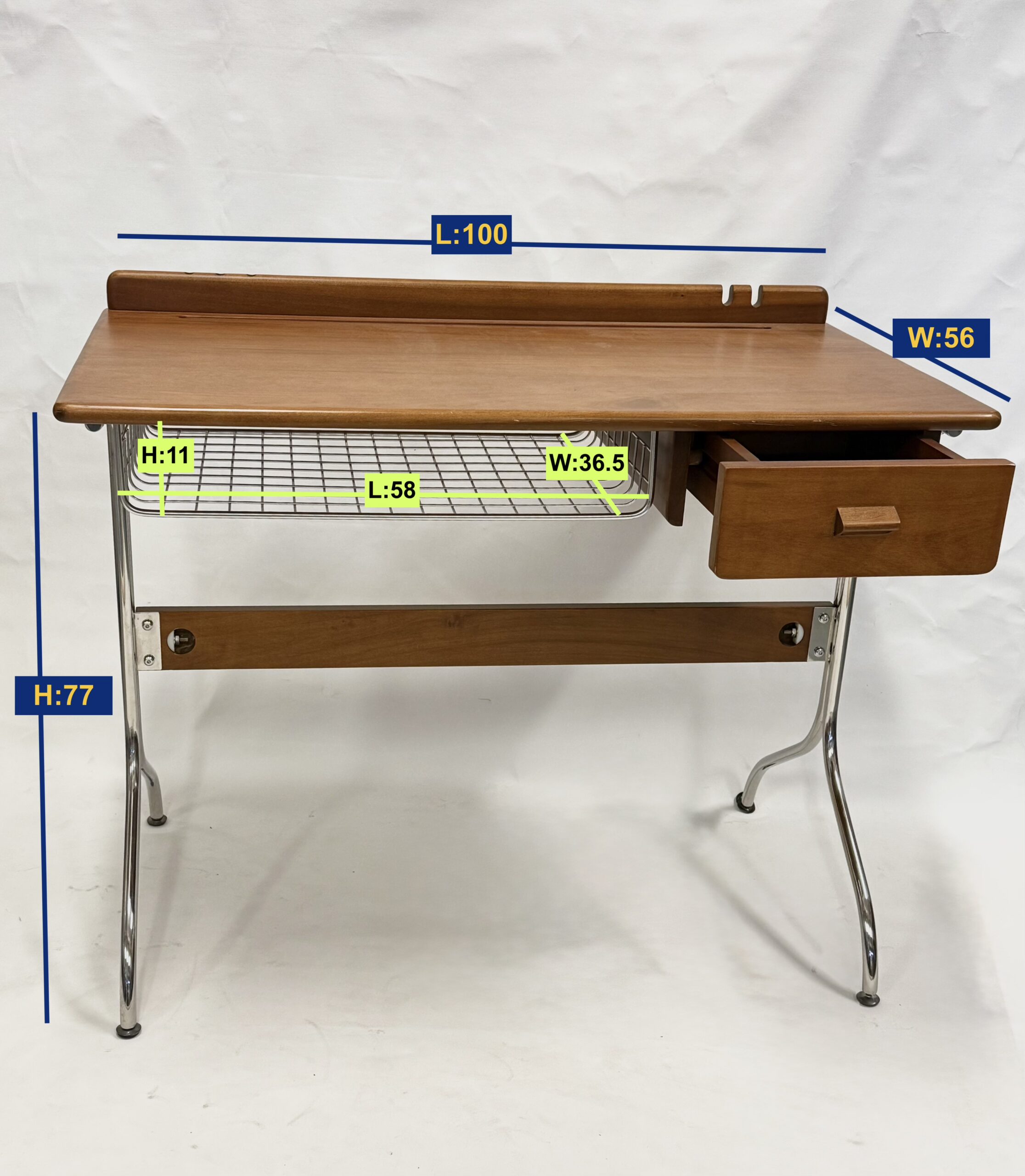 Desk basket internal size: 11 x 58 x 36.5 (H x L x W)